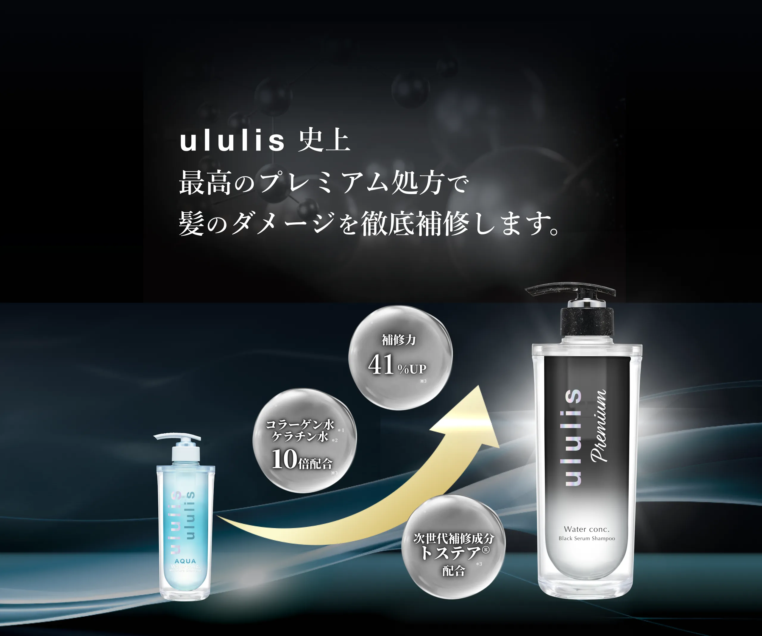 次世代MIZU美容液※1※2とブラックセラム水*12で質感補修※9します。